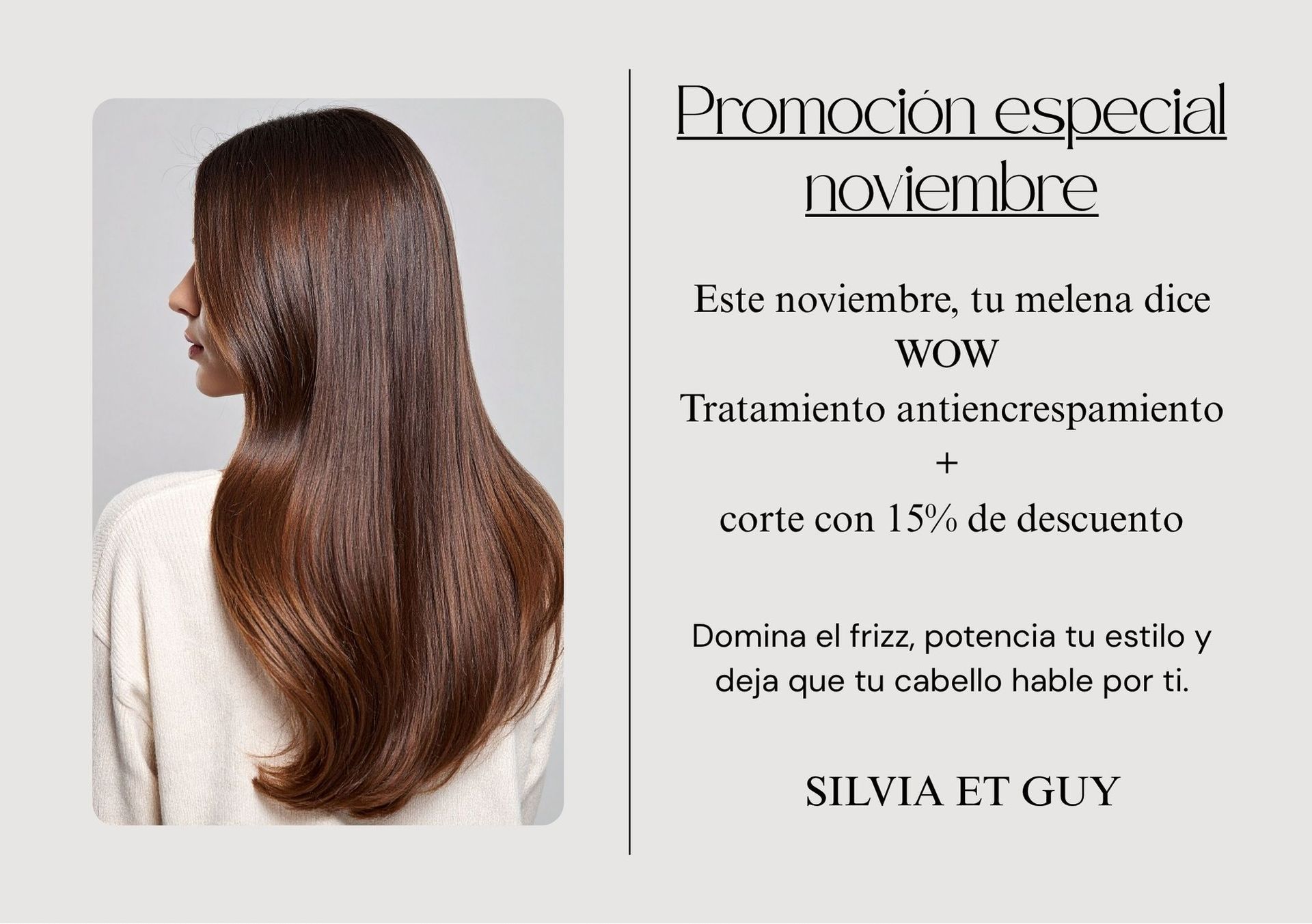 💥 Campaña WOW de Noviembre en Silvia et Guy Renueva tu look: tratamiento WOW + corte con 15% de descuento Noviembre es el mes perfecto para mimarte antes de las fiestas. En Silvia et Guy, queremos que tu cabello brille con fuerza y salud, por eso lanzamos nuestra Campaña WOW de Noviembre: 💆♀️ Tratamiento WOW + corte de pelo con un 15% de descuento. 🌟 ¿Qué es el tratamiento WOW? Es un tratamiento de alto rendimiento diseñado para revitalizar, hidratar y dar brillo intenso al cabello. Ideal para reparar el daño del verano o prepararlo para el frío. El resultado: una melena más suave, más fuerte y visiblemente más saludable desde la primera aplicación. ✂️ Añade el toque final: tu corte perfecto Aprovecha esta oportunidad para renovar tu estilo. Nuestro equipo te asesorará con el corte que más favorece tu rostro y personalidad. Un servicio completo que transforma tu look y deja tu cabello espectacular. 💝 Oferta especial de noviembre Solo durante este mes, disfruta de un 15% de descuento en el combo WOW + corte de pelo. Una experiencia completa para mimarte, cuidar tu cabello y estrenar imagen antes de las fiestas. 📅 Reserva tu cita La promoción estará disponible hasta el 30 de noviembre. Puedes reservar tu cita por WhatsApp, Instagram o directamente en el salón Silvia et Guy. ¡Date el gusto que tu cabello necesita y vive tu momento WOW!